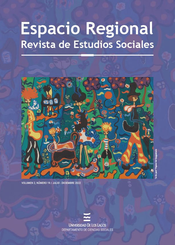 Vol. 2 Núm. 20 (2023)En esta edición de «Espacio Regional. Revista de Estudios Sociales» presentamos seis trabajos inéditos que muestran en general la mirada de los estudios en ciencias sociales y humanidades desde lo regional. Sobre todo, agradecemos a nuestros colaboradores/as por las iniciativas de investigación que están llevando adelante y por los valiosos aportes que, con ello, entregan a la sociedad nacional e internacional. Vayan nuestros agradecimientos, nuevamente, a la artista de la región de Los Lagos (Chile), Berta Ayancán, quién nos presenta la obra “Después de cuarentena” (2020). Esta obra fue realizada en acrílico sobre lienzo de 160 x 200 cm. y muestra que “llegó la forma a la hora de la alegría”; en esta obra, la artista busca retratar un significado de esperanza y de jolgorio post pandemia, en una escena cotidiana del sur chileno. Podemos observar mujeres con polleras y paños en sobre sus cabezas y hombres de poncho y sombrero disfrutando la alegría de haber pasado una de las etapas más tenebrosas vividas por la humanidad durante estos últimos años.